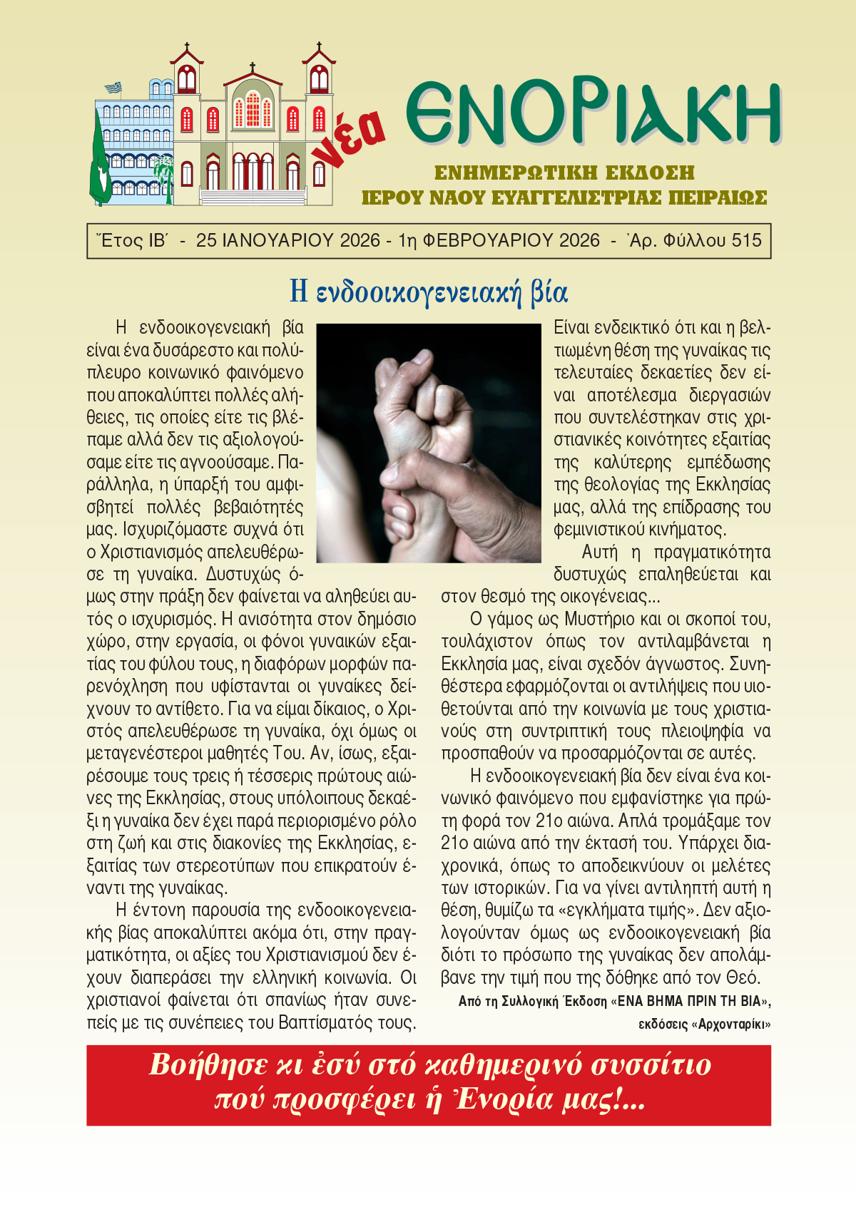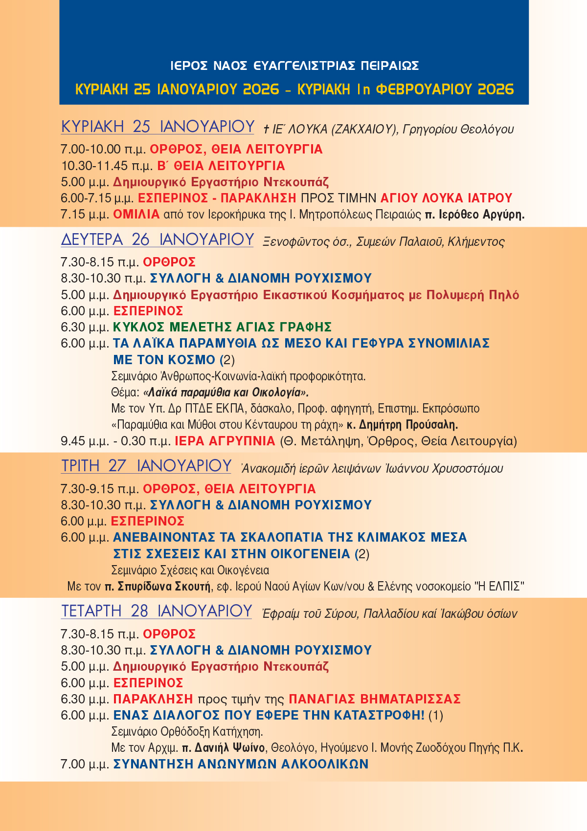 «Νέα Ενοριακή» 25 Ιανουαρίου 2026 – 1 Φεβρουαρίου 2026