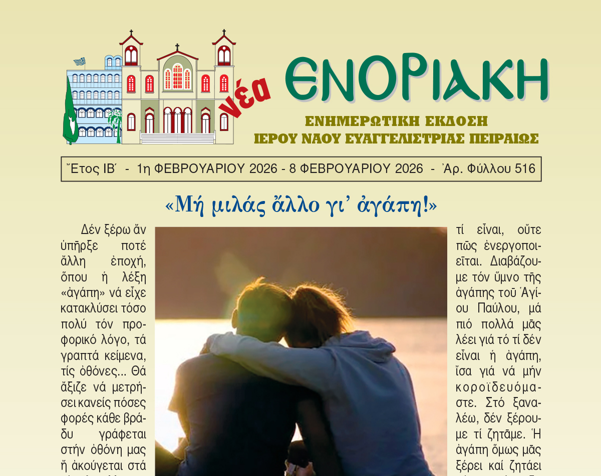 «Νέα Ενοριακή» 1 Φεβρουαρίου 2026 – 8 Φεβρουαρίου 2026