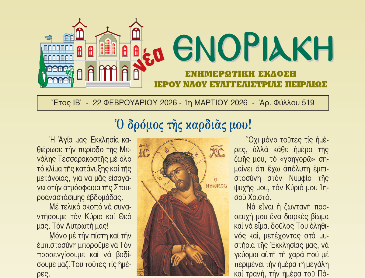 «Νέα Ενοριακή» 15 Φεβρουαρίου 2026 – 22 Φεβρουαρίου 2026
