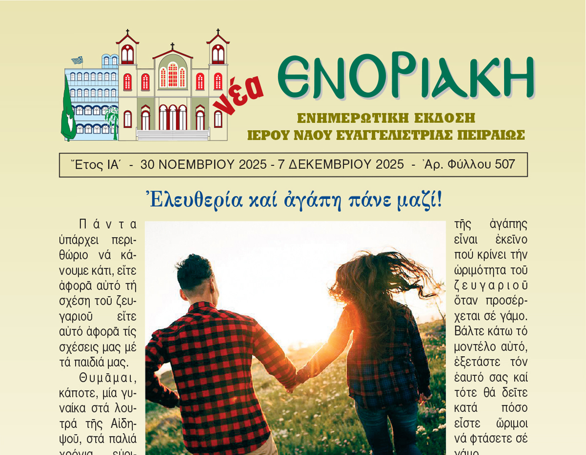 «Νέα Ενοριακή» 16 Νοεμβρίου – 23 Νοεμβρίου 2025