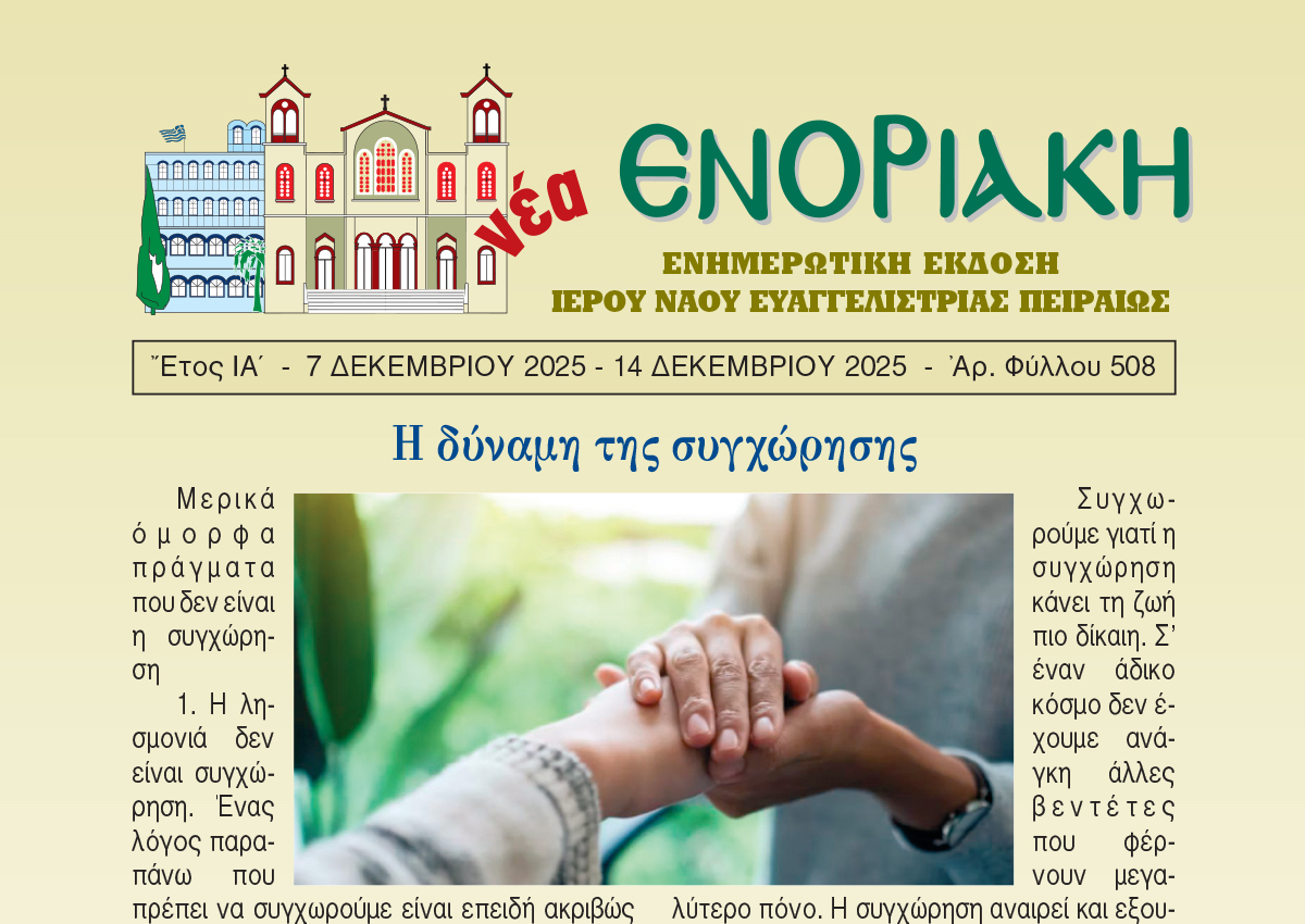 «Νέα Ενοριακή» 7 Δεκεμβρίου – 14 Δεκεμβρίου 2025