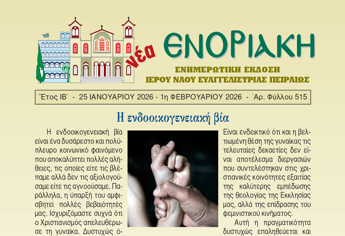 «Νέα Ενοριακή» 18 Ιανουαρίου 2026 – 25 Ιανουαρίου 2026